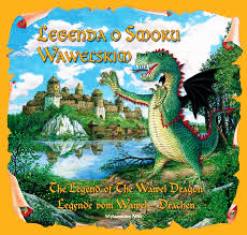 "Legenda o smoku wawelskim" to książka w trzech wersjach językowych - polskim, angielskim i niemieckim. Wydana na kredowym papierze, jej zaletą są również piękne, kolorowe ilustracje. Kiedy okrutny smok zamieszkał jamę na wawelskim zboczu Gród krakowski zadrżał ze strachu! Bestia pożerała zwierzęta i ptactwo domowe, a im więcej jadł, tym więcej domagała się daniny. Kiedy zapasy żywności były już niewystarczające smok zaczął polować również na ludzi. Zwołanym przez króla podwładnym nie udało się pokonać potwora ... więc zaradny władca wysłał giermków aby ogłosili w całym mieście, iż osoba, której uda się zabić smoka, otrzyma wspaniałą nagrodę. Wielu śmiałków próbowało uśmiercić smoka, lecz niestety nikomu się nie udało. Tym zmaganiom przypatrywał się uważnie szewc. Po kilku dniach wpadł na wspaniały pomysł! Kupił barana... wyjął wszystkie jego wnętrzności, a skórę obficie nadział siarką i smołą. Tak przygotowane zwierzę podrzucił przed pieczarę smoka, który zwabiony zapachem baranka, wyszedł z jamy i szybko połknął samkowity kąsek. Poczuł przeraźliwy ból - ogień zaczął palić jego żołądek! Olbrzym podszedł do brzegu rzeki i zaczął pić wodę. Jego brzuch z sekundy na sekundę stawał się coraz większy... ! Smok pił... pił... pił... aż pękł! W grodzie zapadła radość, a bohater został należycie nagrodzony.