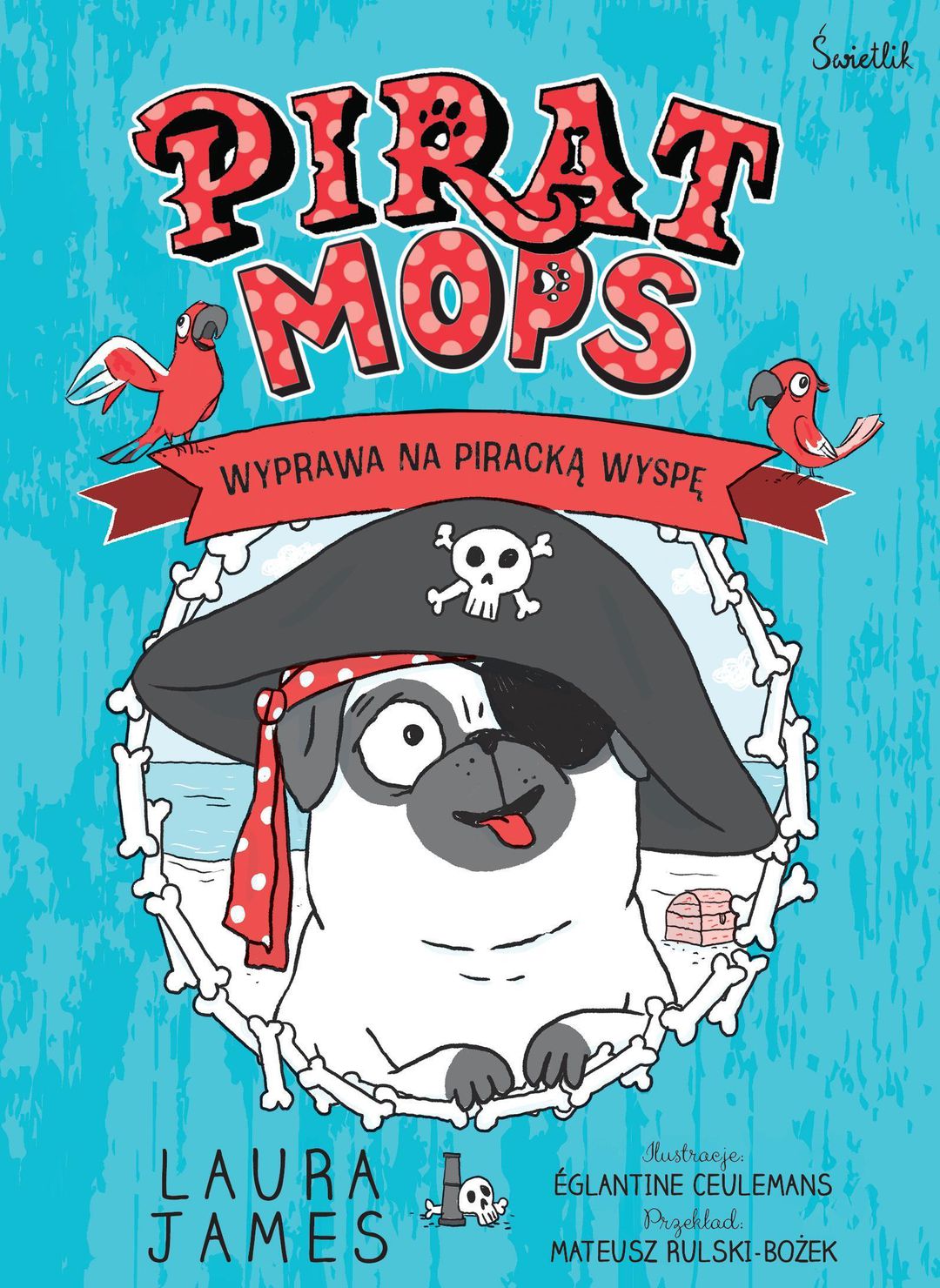 Mops i Panna Miranda spędzają wakacje nad morzem. Psiak korzysta z uroków letniego odpoczynku, choć bezkresna woda budzi w nim niepokój. Wszystko się zmienia, gdy znika cenny skarb – Mops musi przełamać swoje lęki i wyruszyć na poszukiwania zguby. Seria przypadkowych zdarzeń prowadzi do zabawnych sytuacji, które wywołają uśmiech podczas lektury!
